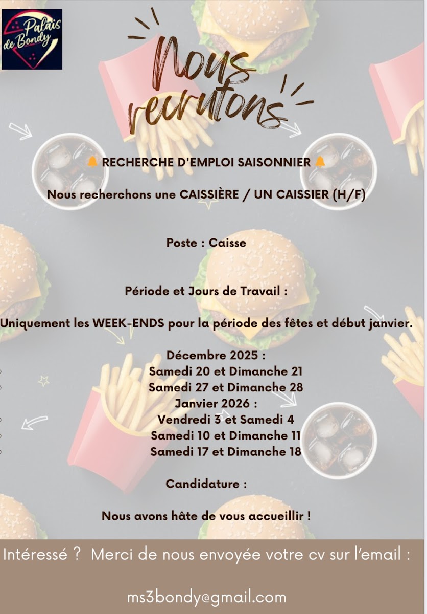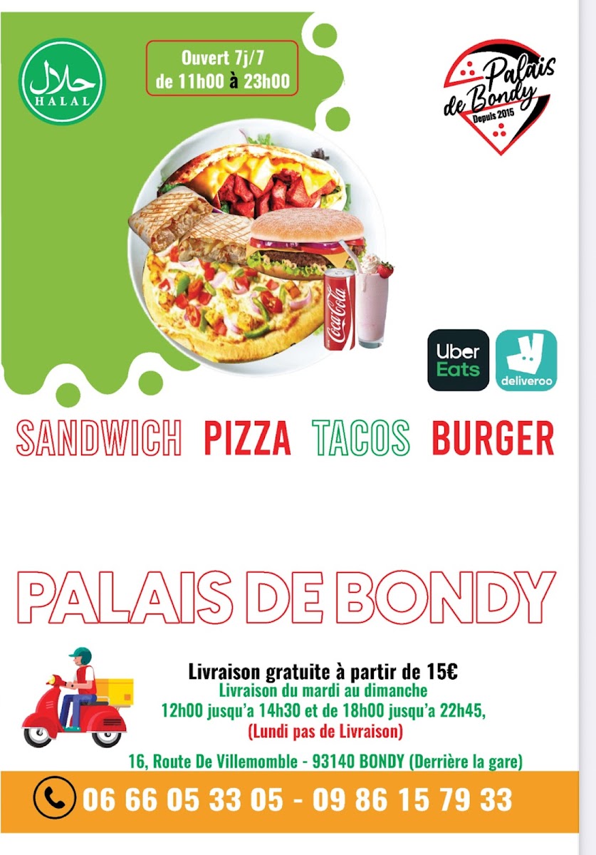 Palais De Bondy offers a variety of delicious and satisfying dishes, providing a perfect mix of flavors to suit a wide range of tastes. The menu features hearty sandwiches that promise to satisfy your hunger with their fresh ingredients and bold flavors. Among the options, the SMASH BURGER stands out as a fan favorite, offering a juicy and flavorful experience for burger lovers. For those craving a more international touch, the tacos offer a vibrant and flavorful bite, perfect for anyone looking to enjoy something with a little spice. If you're in the mood for something familiar but with a twist, the pizza options will delight you, with crispy crusts and savory toppings to satisfy your pizza cravings. Overall, Palais De Bondy’s menu combines classic comfort food with unique options, making it a great destination for anyone in the Bondy area.